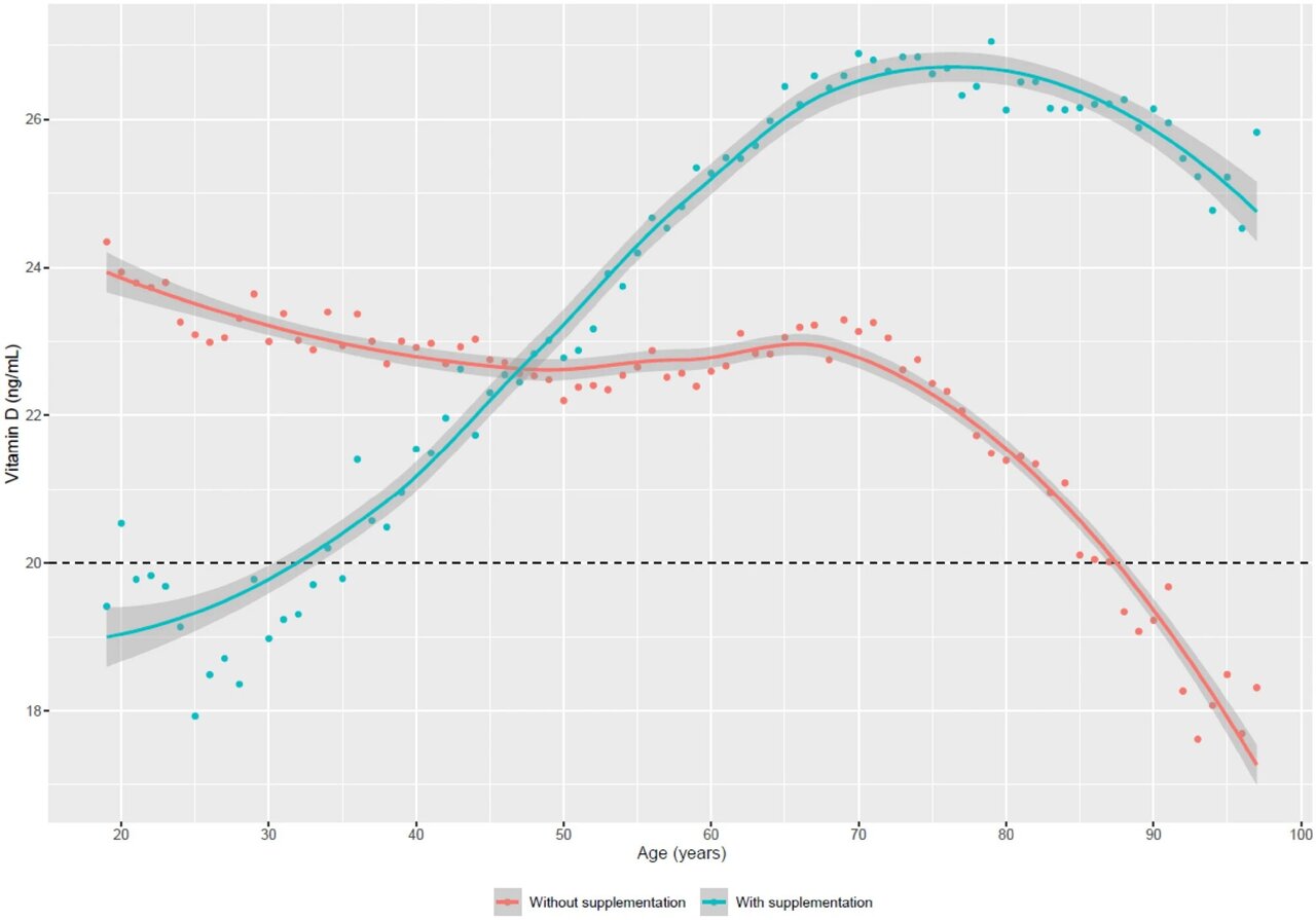 Para quienes no logran alcanzar niveles adecuados con la exposición solar y la dieta, deberán recurrir a la suplementación si el médico lo considera. Normalmente la forma que se recomienda es la del colecalciferol (vitD3), y la dosis siempre dependerá de la edad, tipo de piel, época del año, el nivel de actividad física y el lugar donde se vive, aunque suele andar entre las 2000-4000 UI/día.